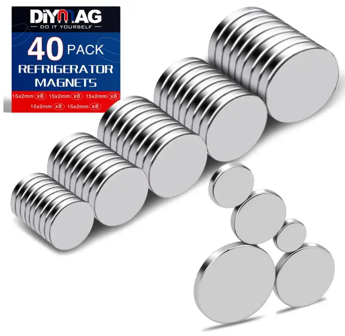 DIYMAG Small Rare Earth Magnets, 40 Pack, 5 Sizes – Neodymium Magnets for Refrigerator, DIY, Crafts, Kitchen & Office